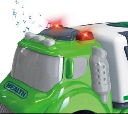 Városi Teherautó Popelár Autó tökéletes játék minden kis autórajongónak és városi speciális járművek rajongójának. A Popelár autó valósághű hang- és fényhatásokkal van felszerelve, melyek a jármű tetején található gomb megnyomására aktiválódnak.