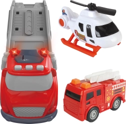 A CITY TRUCK sorozatból származó tűzoltó kisteherautó lehetővé teszi a gyerekek számára, hogy igazi tűzoltókká váljanak. Egy vörös kisteherautóból áll vontatóval, helikopterrel és kis tűzoltóautóval. A valósághű hangok és fények miatt még izgalmasabbá válik a játék!