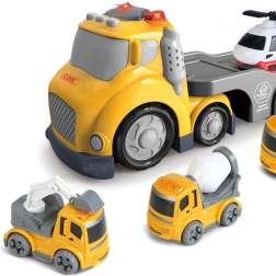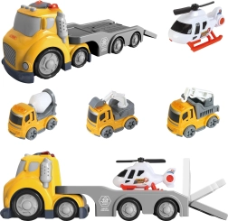 WOOPIE sárga vontatókocsi a CITY TRUCK sorozatból lehetőséget nyújt gyermekének, hogy kis mentőssé váljon. Kiváló minőségű anyagokból készült, a készlet tartalmaz egy nagy piros teherautót vontatóval, helikoptert és egy kis tűzoltóautót. A világító- és hangeffektusok még valósághűbbé és izgalmasabbá teszik a játékot.