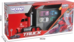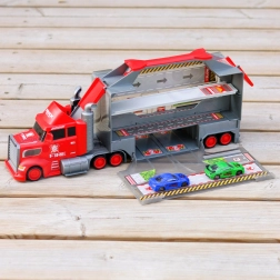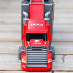 A teherautó autószállítóként működik – pakold fel a kisautókat, rögzítsd biztonságosan, és indulj új kalandokra.