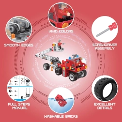 A LÉTREHOZÓ VÁROS Tűzoltóállomás készlet magasabb szintre viszi a szórakozást a különböző mentőjárművek összeszerelési lehetőségeivel. Szilárd anyagokból készült, ami garantálja tartósságát és hosszú élettartamát. Ez a vonzóan kidolgozott készlet támogatja a kreatív szerepjátékot és fejleszti a gyermekek technikai és szociális készségeit.