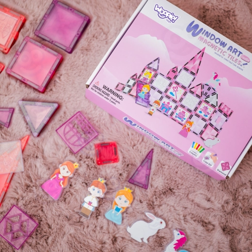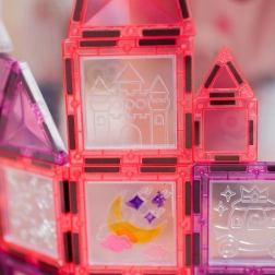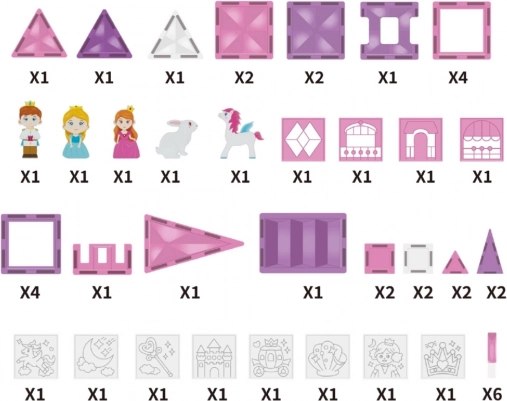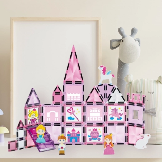 Ez a rózsaszín–lila mágneses lapkakészlet és kiegészítők a gyermeki fantáziát valódi palotákká, tornyokká és kapukká változtatják. Az ablakos, tetős és dekoratív mintás elemek a erős mágneseknek köszönhetően könnyen összekapcsolhatók, így az építmények tartják a formájukat, és a gyerekek frusztráció nélkül játszhatnak.