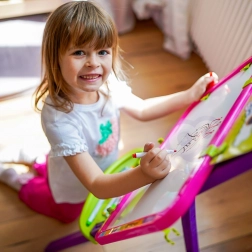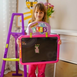 A 3 az 1-ben gyerek tábla ideális játékhoz és tanuláshoz. A mágneses felület remek a mágneses játékokhoz és betűkirakóhoz, a törölhető oldalra filccel lehet rajzolni és írni, a speciális fluoreszkáló oldal pedig világító rajzokkal kel életre a LED filceknek köszönhetően. Egy játék, három alkotási mód – rendetlenség nélkül, újra és újra.
