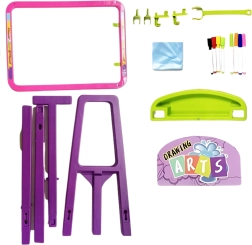 Könnyű, mégis stabil kialakítás kiegészítőpolccal, hogy minden kéznél legyen. 3 éves kortól ajánlott, segíti a kreativitás, a kéz–szem koordináció és az együttműködés fejlődését közös alkotás közben. A fluoreszkáló funkció tápellátását AAA elemek biztosítják.