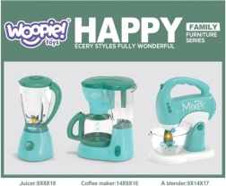 A 3 az 1-ben háztartási készülék szett a WOOPIE márkától csodálatos játék azoknak a gyerekeknek, akik szívesen utánozzák szüleiket a mindennapi tevékenységek során. Valódi hatásokkal van felszerelve, amik biztosítják a hosszú távú szórakozást.