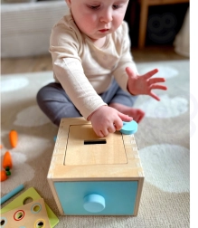 A Woopie márkájú fiókos fa doboz remek játék, mely 12 hónapos kortól alkalmas gyermekek számára, amely kombinálja a szórakozást és az oktatást. A játék egyedi kalandokat kínál különböző nehézségi szintekkel, amelyek fejlesztik a gyermek képességeit.