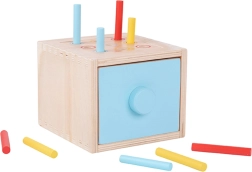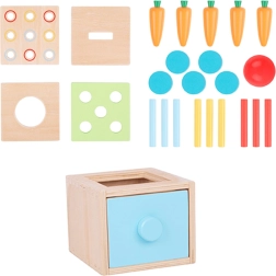 Tárgyak bedobásának elvén alapul a megfelelő lyukakon. Egyszerű, mégis oktató szórakozás, amely során a gyerekek örömet és kihívásokat találnak. A készlet négy nehézségi szintet tartalmaz: