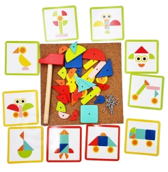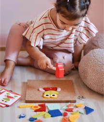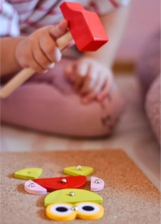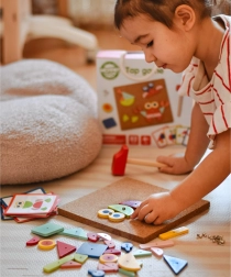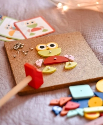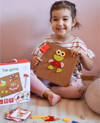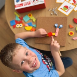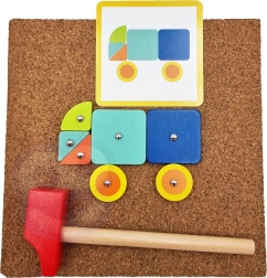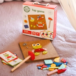 A WOOPIE Green kalapácsos játék nagyszerű módja a gyermekek kreativitásának és logikai gondolkodásának fejlesztésére. A készlet tartalmaz 30 fa kockát, 10 kétoldalas kártyát 20 mintával, három nehézségi szinten, 40 rajzszöget, egy táblát és egy kalapácsot. A gyerekek megpróbálják hűen lemásolni a kártyán lévő képet, különböző színű és alakú kockákkal, vagy saját terveket alkothatnak saját fantáziájuk és kreativitásuk alapján.