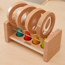 Bemutatjuk a gyermekek számára tervezett fa nagyítókészletet, amely lehetővé teszi számukra a körülöttük lévő világ biztonságos és oktató jellegű felfedezését. Minden nagyító ergonomikus, fa fogantyúval rendelkezik, élénk színekben - piros, zöld, sárga és kék -, amelyeket kifejezetten kicsi kezekhez terveztek.