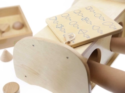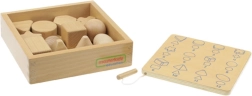 Ajánlott a készlet használata a Találd Ki Tapintással dobozzal (ME04055) kombinálva. Rendelkezésre áll egy fa tálca is a játékok tárolására.