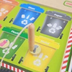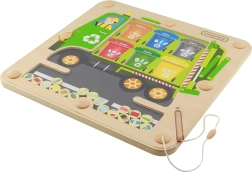 Ez az egyedülálló Masterkidz fa tábla nagyszerű módot nyújt a gyerekeknek, hogy megtanulják a hulladékválogatás alapjait. A gyerekek feladata a mágneses bot segítségével a hulladék korongok megfelelő konténerekbe történő áthelyezése. A konténerek egy nagy zöld újrahasznosító teherautó ábráján helyezkednek el.