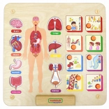 A tábla egyszerű módon magyarázza el, hogyan működnek az egyes szervek: az agy irányítja a gondolkodást, az érzelmeket és az érzékeket, a szív pumpálja a vért, a tüdő segíti a légzést, a gyomor feldolgozza az ételt, és a belek segítik az emésztést. Működő gombok is találhatók rajta, melyek megnyomásával a megfelelő szerv rész világít, ezáltal szórakoztatóbbá és érthetőbbé téve a tanulást.
