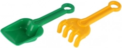 A lapát és a gereblye lekerekített élekkel, kis gyerekkezekhez igazítva. 12 hónapos kortól ajánlott, tökéletes az első homokozós játékokhoz.