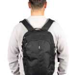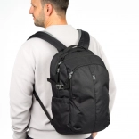 A praktikus felszereltséghez integrált laptoptartó zseb, szemüvegtartó zseb, belső rendező kulcskarabinerrel és pánt a bőröndre rögzítéshez tartozik. Az időtálló, fekete dizájn letisztult és modern, felsős diákoknak, egyetemistáknak és felnőtteknek egyaránt illik.