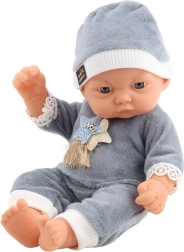 Gyönyörű bébi baba puha szürke pizsamában, sapkával és csillag applikációval ideális 3 éves kortól. Élethű arca, finom részletei és gondosan kidolgozott ruházata vonzóvá teszi a babát kellemes és természetes játékhoz.