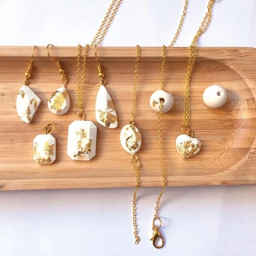 Hogyan kell csinálni? Keverd össze a cementet vízzel az útmutató szerint, tegyél arany vagy réz füstlapokat a formákba, öntsd bele a masszát és száradás után vedd ki az öntvényeket. Használd a mellékelt eszközöket a kézzel készített ékszerek befejezéséhez és összeszereléséhez.