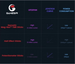 - Mag-Res TMR karok, Hall-effektusos analóg ravaszok, D‑pad, előlapi mikrogombok