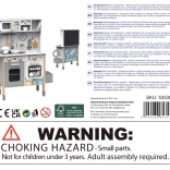 A csomag gazdag tartozékokat tartalmaz: edények, konyhai eszközök, szemétválogató tábla kihúzható kosarakkal, valamint szakácsszett (kötény és sapka). A konyha magassága állítható a kényelmes használatért. Elemet a csomag nem tartalmaz.
