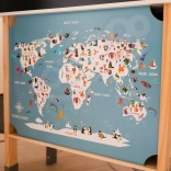 - Konyha mikróval, sütővel, mosogatógéppel, mosógéppel és kávéfőzővel; szennyestartó kosár; 4 tányér; bögre; lábas; serpenyő; spatula; villa; szakácskötény és sapka; krétatábla; világtérkép; képecskék a hulladék válogatásához
