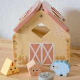 A bájos fa pajta kivágásokkal az állatok és formák számára aktív játékra és természetes tanulásra ösztönöz. A megfelelő elemek beillesztésével a gyerekek türelmüket, koncentrációjukat és az ok–okozati összefüggések megértését gyakorolják. A pasztell, természetes dizájn remekül illik a gyerekszobába.