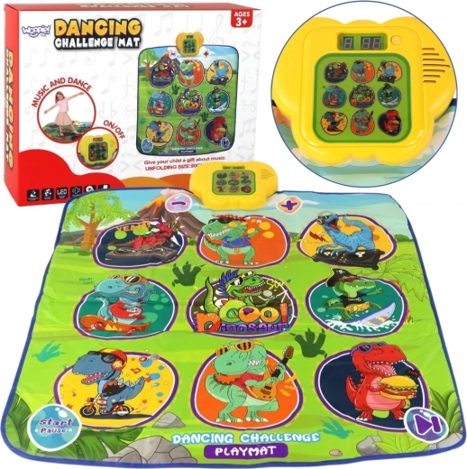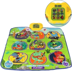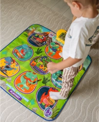 A vidám, dinoszauruszos táncpad mozgásra és interaktív tanulásra ösztönzi a gyerekeket. A kilenc nagy, színes mező érintésre reagál, a lépések vezetését pedig a vezérlőmodul biztosítja, amely játékos formában támogatja a koordinációs készségeket, a ritmusérzéket és a hallási észlelést. A puha kialakítás kényelmes a lépéshez és biztonságos a mindennapi játékban.