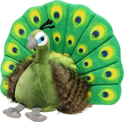 A plüsspáva puha, kellemes anyagból készült, ami ideális játszótárs ölelkezéshez és kényelmet nyújt a gyermek számára. A pehely sértetlen szárnyai, kifejező szemei és gondosan kidolgozott mintázatai a farkán egyedülálló karaktert adnak neki, és szinte igazi pávának tűnik.
