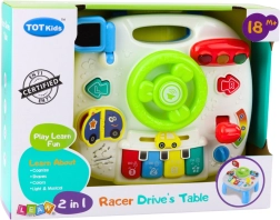 Az interaktív oktatási asztal kétféle használati lehetőséget kínál: önálló asztalként vagy kiságyhoz rögzített panelként. 18 hónapos kortól gyermekeknek készült, és segít a motorikus képességek, a koordináció és az érzékelés, mint a hallás és a látás fejlesztésében. A gazdag interaktív funkcióknak köszönhetően bátorítja a gyermekeket az önálló tevékenységre és a világ megismerésére.