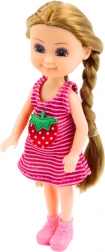 A készletben található mini babának hosszú, szőke haja van, amely fonatokba van kötve, rózsaszín csíkos ruhát és rózsaszín cipőt visel. A készlet tartalmaz egy rózsaszín-lila babakocsit, amely a két aranyos kiscica, egy fehér és egy barna szállítására szolgál. A készletet állati kiegészítők egészítik ki, mint például kalap, sapka és két korona, amelyek lehetővé teszik a gyermeknek különféle jelenetek létrehozását és képzelőerejük fejlesztését.