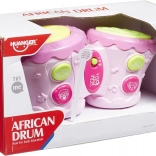 A két dob színes ütőfelületei támogatják a két kéz koordinációját és a motorikus készségek fejlődését.