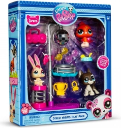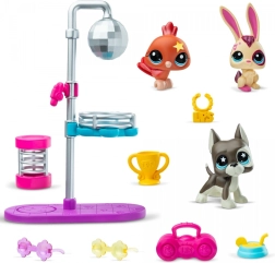 Lépj be a LITTLES PET SHOP világába, és élvezd a diszkó hangulatát! Ez a játékos szett három táncos kis kedvencet tartalmaz, akik készen állnak, hogy diszkógömb fényei alatt ragyogjanak. A forgó platformok lehetővé teszik, hogy pörögjenek és bemutassák legjobb mozdulataikat, miközben a stílusos kiegészítők kiemelik személyiségüket.