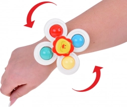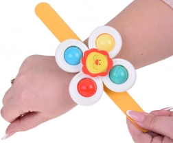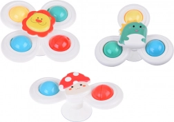 Javítsa gyermeke fürdési idejét színes pörgettyű játékokkal, amelyek vidám oroszlán, spongya és dinoszaurusz motívumokat tartalmaznak. A pörgettyű könnyen rögzíthető különböző felületekre, így a gyermek szórakozik akár étkezés közben, akár autózás során.