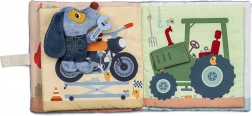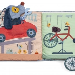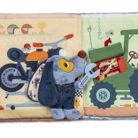 Ismerje meg Jules kutya világát a garázsában ezen az interaktív textilkönyvön keresztül. Minden oldal új ingereket kínál a gyermek képességeinek fejlesztésére: