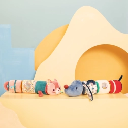Szórakoztató anyagjáték hengerekkel, amelyek nemcsak az összeillesztést és szétszedést kínálják, hanem különféle érzékszervi ingereket is: