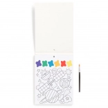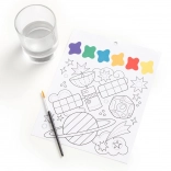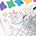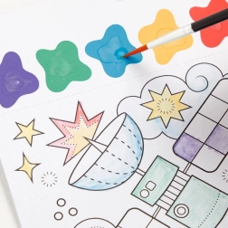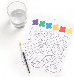 Kis művészeknek kiválóan alkalmas, ez a készlet fejleszti az alkotói gondolkodást, a motorikus készségeket és a koncentrációt. Egyszerűen mártsa vízbe az ecsetet, és kezdje el színezni az űrtárgyakat a perforált szélű lapokon, hogy könnyen leválasztható legyen a kész rajz. Megfelel minden aktuális európai biztonsági előírásnak, így biztonságos élményt nyújt a gyerekeknek.