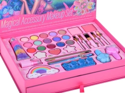 Amikor kinyitod, csoda történik! De ne stresszelj - pozitív értelemben! :) A smink szerelmesének álmait találod benne! Ezen kívül a bőrönd tartalmaz egy fiókot hajkiegészítőkkel és ékszerekkel. Majdnem minden tárgyán sellő motívum vagy édes, lányos világ inspirációt találhatsz.