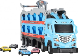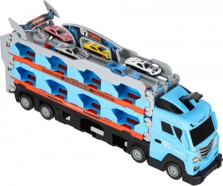 A szett része a beépített kilövő rámpa a gyors rajtokhoz és 8 különböző sport kisautó. Játék után az összes autó könnyedén visszapakolható a kamion rekeszeibe – a készlet így nemcsak szórakoztató, hanem praktikus tárolást is kínál.
