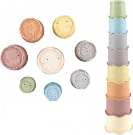 A 8 pohárkából álló népszerű torony ideális játék a legkisebbeknek. Sokoldalú használatának köszönhetően fürdés közben, a homokozóban és otthoni játék során is remekül kihasználható. Az egymásra rakás és egymásba illesztés támogatja a kéz–szem koordinációt és a térbeli tájékozódás fejlődését.