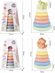 A ZIRO – dínó puha felfűzhető karikák ideális választás a totyogóknak, akik most ismerkednek a formákkal, színekkel és az egymásra rakással. A kellemesen puha anyagnak köszönhetően a karikák jól kézben tarthatók, és a legkisebb kezecskéknek is megfelelőek. A gyerekek gyakorolják a szem–kéz koordinációt, és megtanulják a karikákat méret vagy szín szerint sorba rendezni.