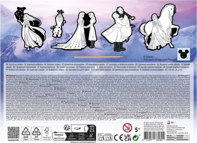 Fedezze fel a Jégvarázs mesés világának varázsát ezzel a kreatív kaparós matrica készlettel. A kaparó segítségével könnyedén felfedheti a színes motívumokat a fekete réteg alatt, majd matricaként füzetre, ajándékra vagy üdvözlőlapra ragaszthatja őket. A csomag 5 db-ot tartalmaz.