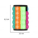 Okos és szórakoztató logikai kirakó henger formában, öt sorral, amely megdolgoztatja az agyat és megnyugtatja az elmét. Forgasd a gyűrűket, és rendezd át a színes elemeket úgy, hogy egy sorban azonos színek legyenek. A játék fejleszti a logikus gondolkodást, a finommotorikát, és kiválóan csökkenti a stresszt.