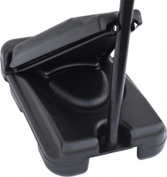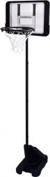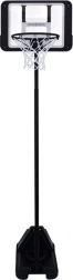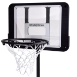 Ez a kosárlabdatábla stabil felépítést kínál fémből készült csövekkel és széles, tartós műanyag talppal, amely vízzel vagy homokkal tölthető fel a stabilitás érdekében. Az állítható magasság lehetővé teszi a tábla korhoz és játékosok képességeihez igazítását, így a gyermekével együtt nőhet.