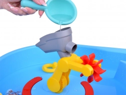 Ez a kék vizes asztal ideális a vízi játékokat kedvelő gyerekek számára. Kompakt méretei lehetővé teszik a könnyű elhelyezést minden térben és egyszerű szállítást. A mozgó részek felkeltik a gyermek figyelmét. A tevékenységek, mint például forgás, locsolás és fröcskölés, rengeteg szórakozást nyújtanak gyermekeinek.