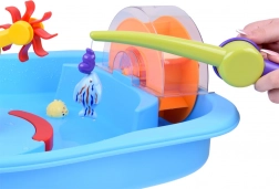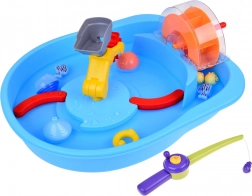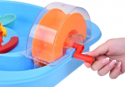 Interaktív kék vizes asztal, amely kiváló beltéri és kültéri játékhoz. Tartalmaz különféle mozgó elemeket, amelyek hosszú órákon át szórakoztatják a gyerekeket. Ideális vizes játékokhoz, az asztal homokozóként is használható.