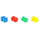 Az egyes csavarok és anyák különböző formájúak, amelyeket helyesen kell párosítani. Az egyszerű elvnek köszönhetően a készlet alkalmas óvodások számára, és kiválóan támogatja a térbeli képzelőerőt és a türelmet.