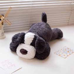 Ez a plüss kutya szimpatikus arccal, nagy orral, hosszú, lógó fülekkel és bolyhos farokkal rendelkezik, ami rendkívül barátságos és vidám megjelenést kölcsönöz neki. Kényelmes, természetes pozícióban fekszik, lábai előre és hátra nyúlnak, ami támogatja a gyermekek képzeletét és kreativitását.
