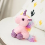 Ez a bájos plüss egyszarvú eredeti kiegészítőként szolgál hátizsákhoz, táskához, kulcshoz vagy tolltartóhoz. Kellemes rózsaszín plüssből készült, csillogó lila elemekkel, puha sörénnyel és farokkal szivárvány színekben és ragyogó szarvval. Ez a mini egyszarvú elbűvöli mind a gyerekeket, mind a felnőtteket.