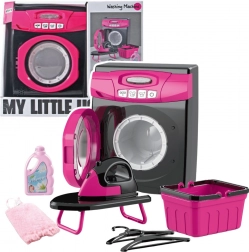 A háztartási készülékek készlete gyerekeknek nagyszerű választás a kíváncsi kicsiknek, akik szívesen figyelik és utánozzák a mindennapi háztartási feladatokat. Játékos mosás, vasalás és ruhaszortírozás nemcsak szórakoztató időtöltés lehet, hanem értékes oktatási élmény is. A készlet tartalmaz egy valósághű játék mosógépet fény- és hangeffektekkel, valamint gazdag kiegészítő készlettel: mini vasalót, vasalódeszkát, szennyeskosarat, imitációs mosószert, két vállfát és puha rózsaszín ruhácskát. Minden rész tartós és biztonságos anyagokból készült.