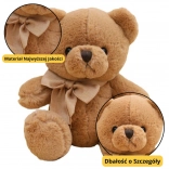 Ez a mackó rendkívül finom plüssből készült, meleg, karamellszínű árnyalatban, így ideális társ a mindennapi játékhoz, ölelkezéshez és pihenéshez. A nyak körüli finom masni és a tappancsra hímzett felirat eleganciát kölcsönöz, amely nemcsak játékká, hanem esztétikus dekorációs elemmé is teszi.
