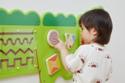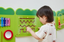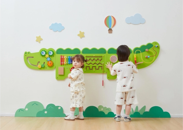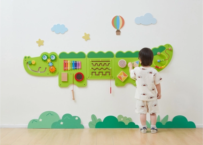 Minden panel más-más tevékenységet kínál – a xilofonon való játéktól a fogaskerekek és mintás tárcsák forgatásán át a gyöngyök vezetéséig és az elemek labirintusokban történő tologatásáig. A gyerekek közben természetesen gyakorolják a koordinációt, a fogást, a türelmet és a problémamegoldást. A falra szerelés helyet takarít meg, és egyszerre több gyermek számára is lehetővé teszi a közös játékot.