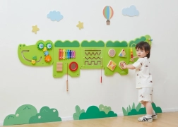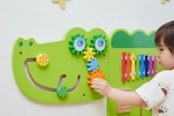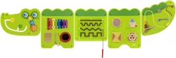 Ez a nagy, falra szerelhető aktivitási tábla vidám krokodil formában több panelre oszlik, melyek felfedezésre hívják a gyerekeket. A színes elemek serkentik a kíváncsiságot, fejlesztik az érzékelést és ösztönzik az önálló játékot. A masszív fa szerkezet lekerekített élekkel biztonságos és tartós a mindennapi használatra.